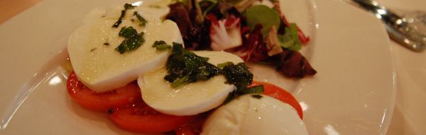 The initial impressions of the restaurant were good, even though it was situated in a strip mall. The decor was nice, the waiters were dressed up and there was an air of professionalism to the place. However, I was a bit turned off at the service. They seemed annoyed that our large group didn’t order any wine or desserts/coffee. Although we did get suckered into getting 6 bottles of $6 water. The food wasn’t super but it wasn’t bad. I ordered a pizza, which was a safe bet. Why? Because on the cover of the menu, it said that this place was a division of Pizza Nova!