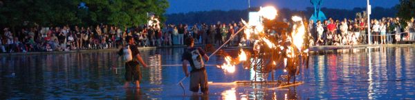 We then took the shuttle bus (TTC bus) version of the Luminato Link to Harbourfront. The Luminato events at Harbourfront was called Carnival H2O and was more interesting. There were the usual static art pieces, and the usual street festival tents (food, crafts); but also constant Carribean music from the ampitheatre, and after the sun set there was a FireWalk (although we didn’t see a lot because we were eating).
